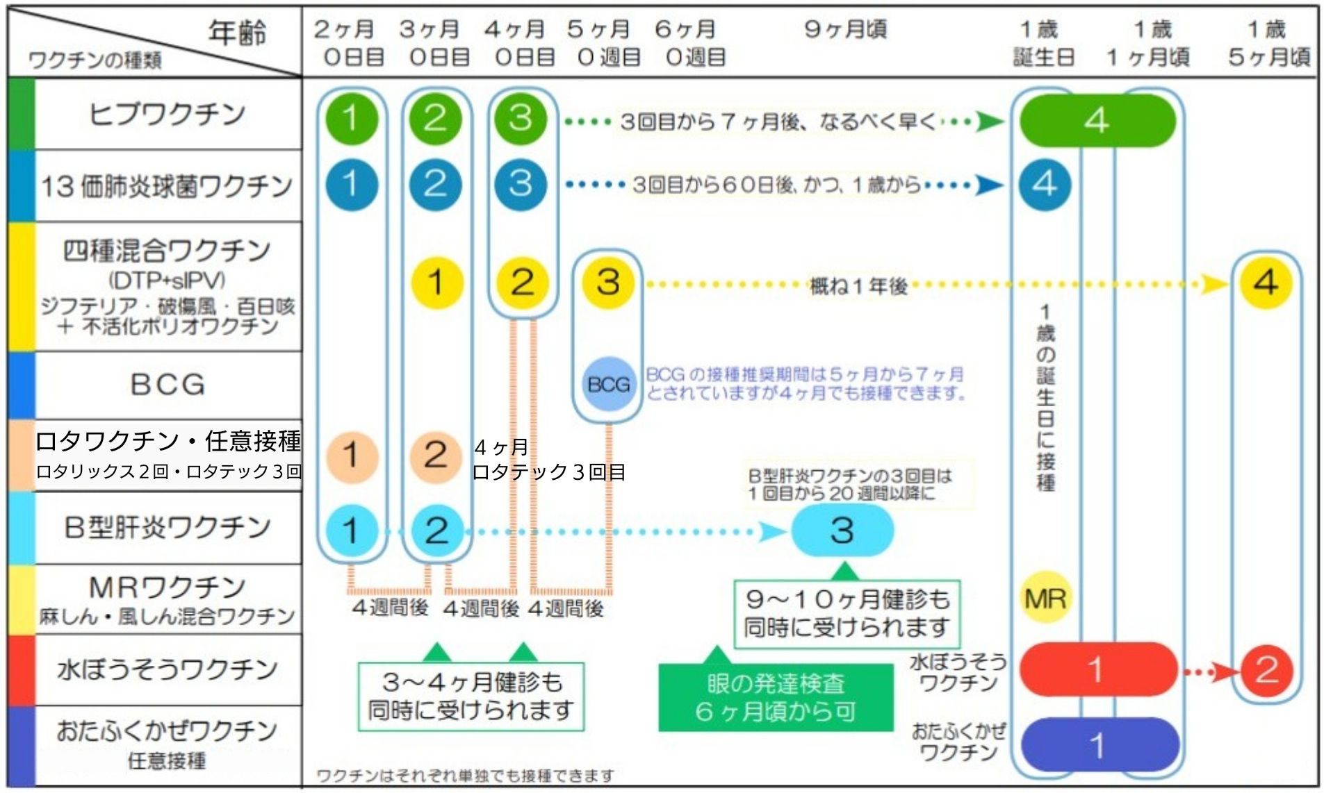 当院では、できるだけ早く、1ヶ月の乳児健診の時から保護者の方と一緒に、種類や順番といった具体的な計画を立て、生後2ヶ月からはじまるワクチンを漏れなく接種し、重症化することがある感染症から子どもを守ります。